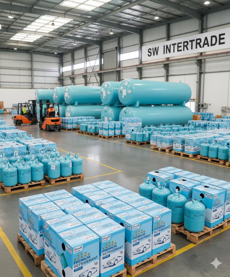 บริษัท เอสดับบลิว อินเตอร์เทรด จำกัด เป็นผู้นำเข้าและจัดจำหน่ายสินค้า สารทำความเย็นหรือ น้ำยาแอร์ (Refrigerant) หลากหลายชนิด เช่น R-22 R-134a R-32 R141b R23 R-404a R 410a และ R-407c เป็นต้น โดย สินค้าของทางบริษัทฯ จะผ่านกรรมวิธีการบรรจุลงถังตามมาตรฐานและมีการทดสอบน้ำยาแอร์ทุกถัง เพื่อที่ลูกค้าจะได้รับสินค้าที่มีคุณภาพและมาตราฐานในระดับสากลทุกถัง